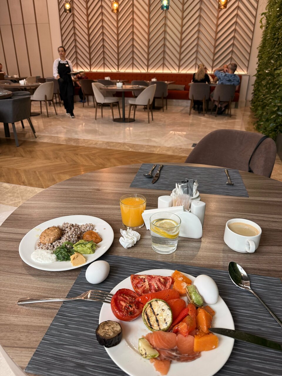 Добрый день, отдыхали семьей из 5 человек 3 взрослых, дети 5 и 1,4 года в данном отеле с 10 по 17 сентября. Начнем по порядку брали 2 номера соединеных, заселение прошло на ура все быстро и с прнимпеием. Завтраки просто огонь, есть все, олеты, яичники, каши, сыры, колбаса, красная рыба, апельсиновые фреш, и многое другое - уходили очень сытые! Персонал очень привеиливый, уборка каждый день, все чисто. Хочется отметить топовую локацию даного отеля (ранее был и в Алене и в Кемпинском) рядом не стояли, тут все в 3 минутах ходьбы, рестораны, кофейни, детские площадки и магазины! Единственый минус отеля если Вы с коляской, то придется походить в обход, так как пандусов нет от слова совсем ((( Советую данный отель!
