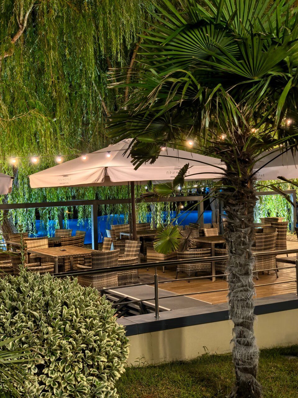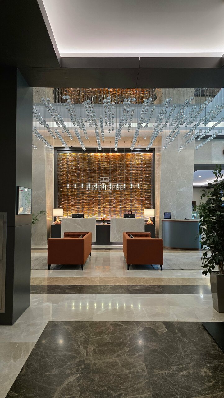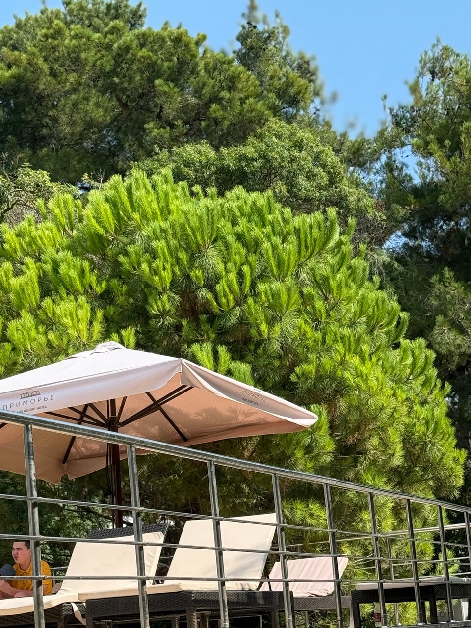 В прошлом году отдыхали в Метрополе, и это был кошмар. А в этом году приехали в Приморье, в пятзведочный отель. Красивый, уютный, хороший завтрак (правда, в выходные дни трудно найти место, где сесть), красивая ухоженная территория и хорошие номера. Отдельный респект за ТВ с подключением к интернету. Я прямо была в восторге от возможности смотреть не обычное ТВ, а свои ВК-видео или Кинопоиск. Удивительно, правда, что в полулюксе есть такая возможность, а в люксе — только ТВ. А моя особая любовь- это открытый бассейн работающий до 22❤️В целом, отель стоит своих денег, и я однозначно его рекомендую! Из самых больших минусов могу выделить лифты — это просто отдельный вид садизма. Мне кажется, когда сатана придумывал пытки, эти лифты он создал в тройке первых. В сталинских домах лифты быстрее, чем здесь. Я, конечно, всё понимаю — они французские, и сейчас обслуживать их тяжело, но это реально просто издевательство. Ты можешь вызвать лифт и ждать его минут 6, просто потому что все лифты решили, что нужно ехать вниз. Ты можешь ждать его на пятом этаже, один лифт будет просто стоять на первом, а другой — доезжать до четвертого и ехать вниз. Я нажала на кнопку и, поняв, что его не дождусь, пошла на лестницу. Одна была закрыта, пришлось идти в другой конец коридора. Спустилась с 5-го этажа на второй и, проходя мимо лифтов, посмотрела, что ни один так и не доехал до 5-го этажа. В общем, это просто какое-то издевательство. В остальном всё очень круто!