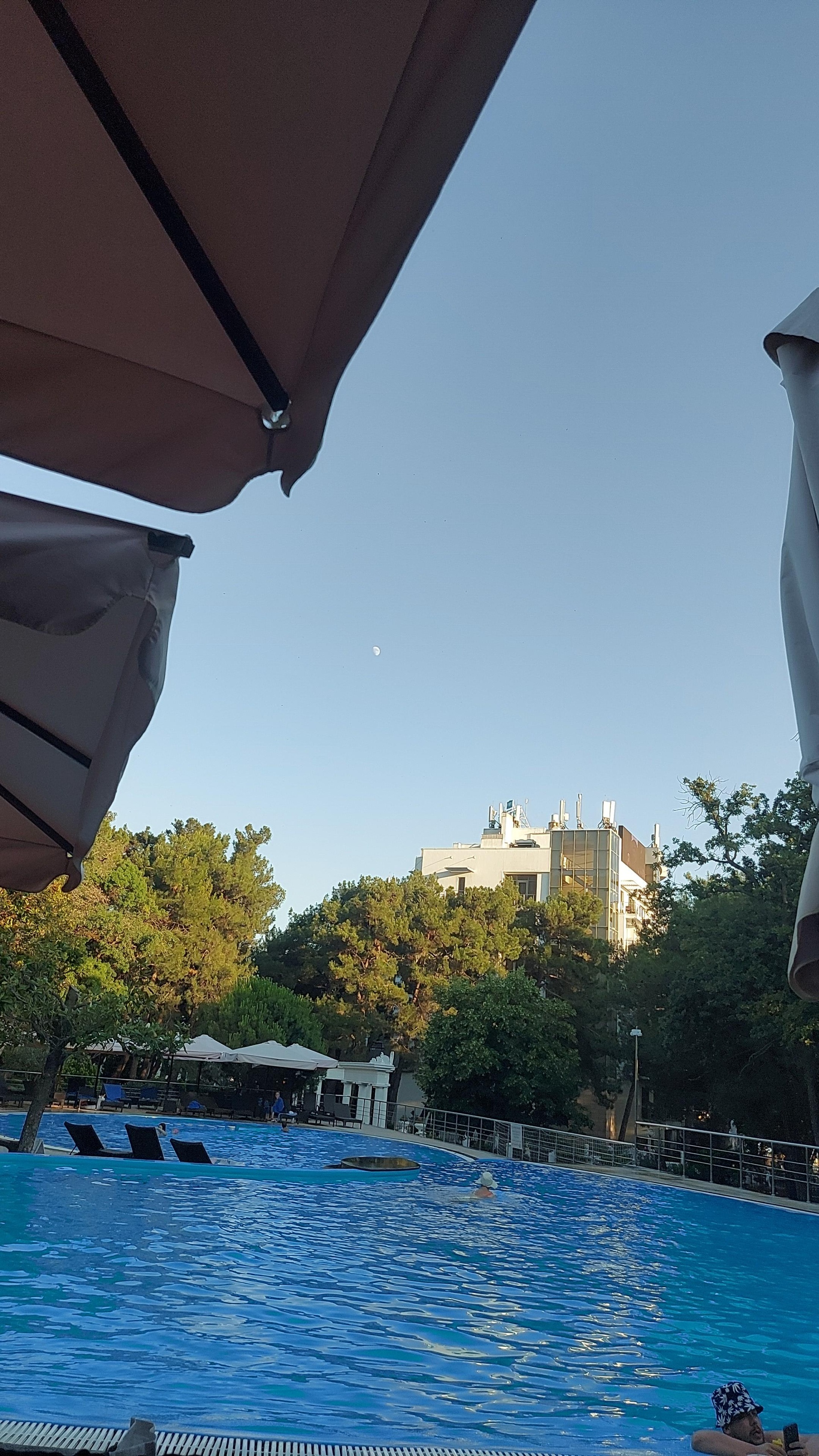 Заезд 16.06-28.06, номер 1417, с видом на море. Все чисто, аккуратно, нет никаких претензий, территория превосходная, бассейн с соленой водой и очень комфортной температуры, завтраки, найдешь все по вкусу, разнообразно, удобные часы работы ресторана. Пляж на море оборудован, но как по мне не совсем удобный вход в море, нужны специальные тапочки, при волнении моря, много тины со дна. В остальном все сделано для комфортного отдыха. Что не понравилось!! Простое недопонимание!!! Подходил на ресепшен по продлению номера за деньги до 18-00 28.06 сразу по приезду 16.06, сказали подойти позже, 23.06 сказали можно бесплатно продлить до 15-00 28.06 или до 18-00 за 16 тысяч, но подойти надо за день до отъезда, следующий визит для продления 27.06 и новая информация для продления, что нужно подойти начиная с 7-00 утра 28.06 и теперь мой подход 28.06., но номер продлить нельзя, так как он забронирован))))) в итоге 32 тысячи и ты в люксе на 6 часов))). Вот такие дела!!! Подскажите, тогда мне туристу, почему при заселении нам был номер предоставлен в 15-10, а мне опцией такой не получилось воспользоваться и в том числе заранее и платно?)))))